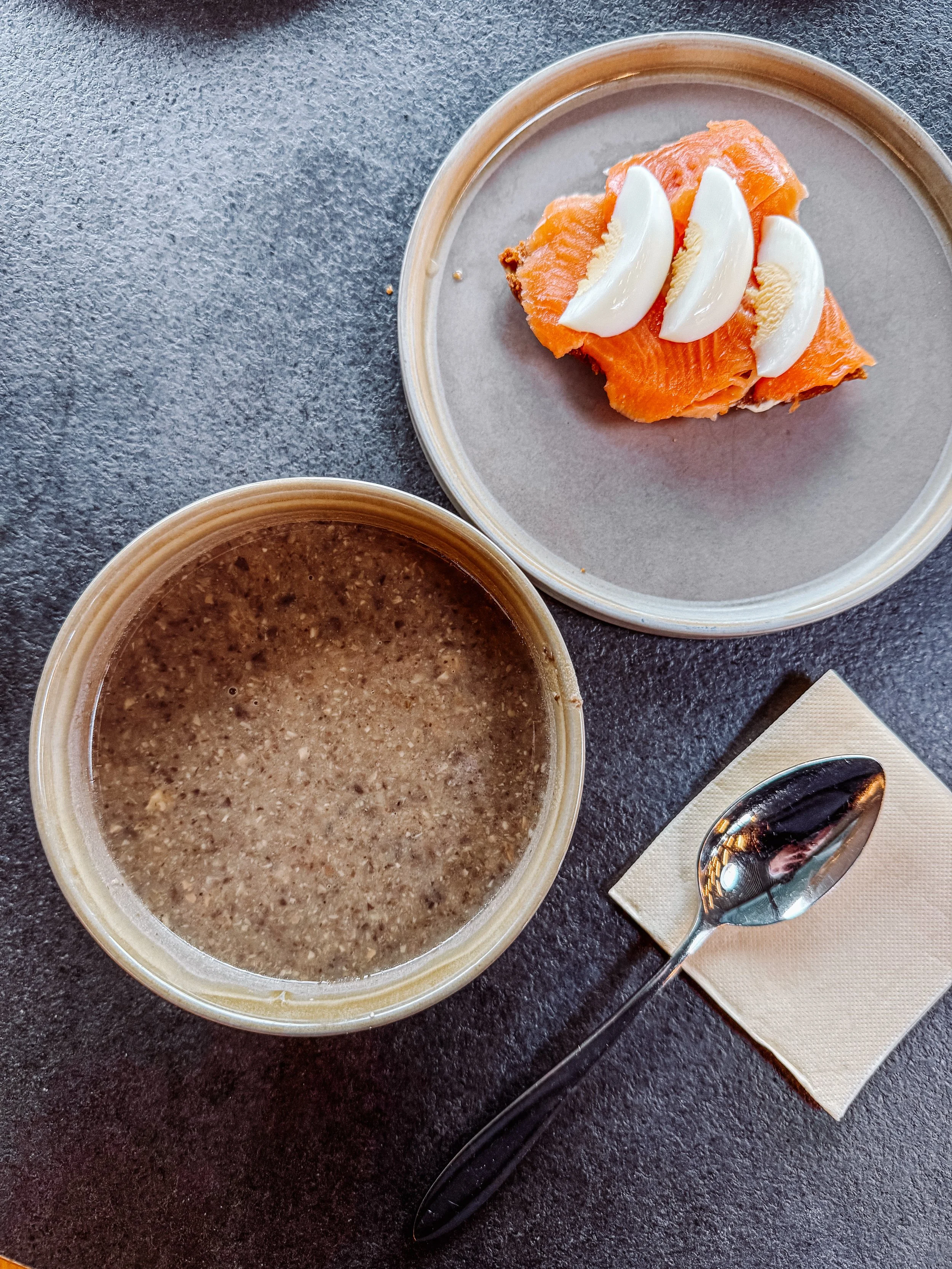 💲Za zupy i kanapki z chleba razowego z pstrągiem i jajkiem oraz ciepły napój dla dwóch osób zapłaciliśmy 8580ISK (ok. 256zł).