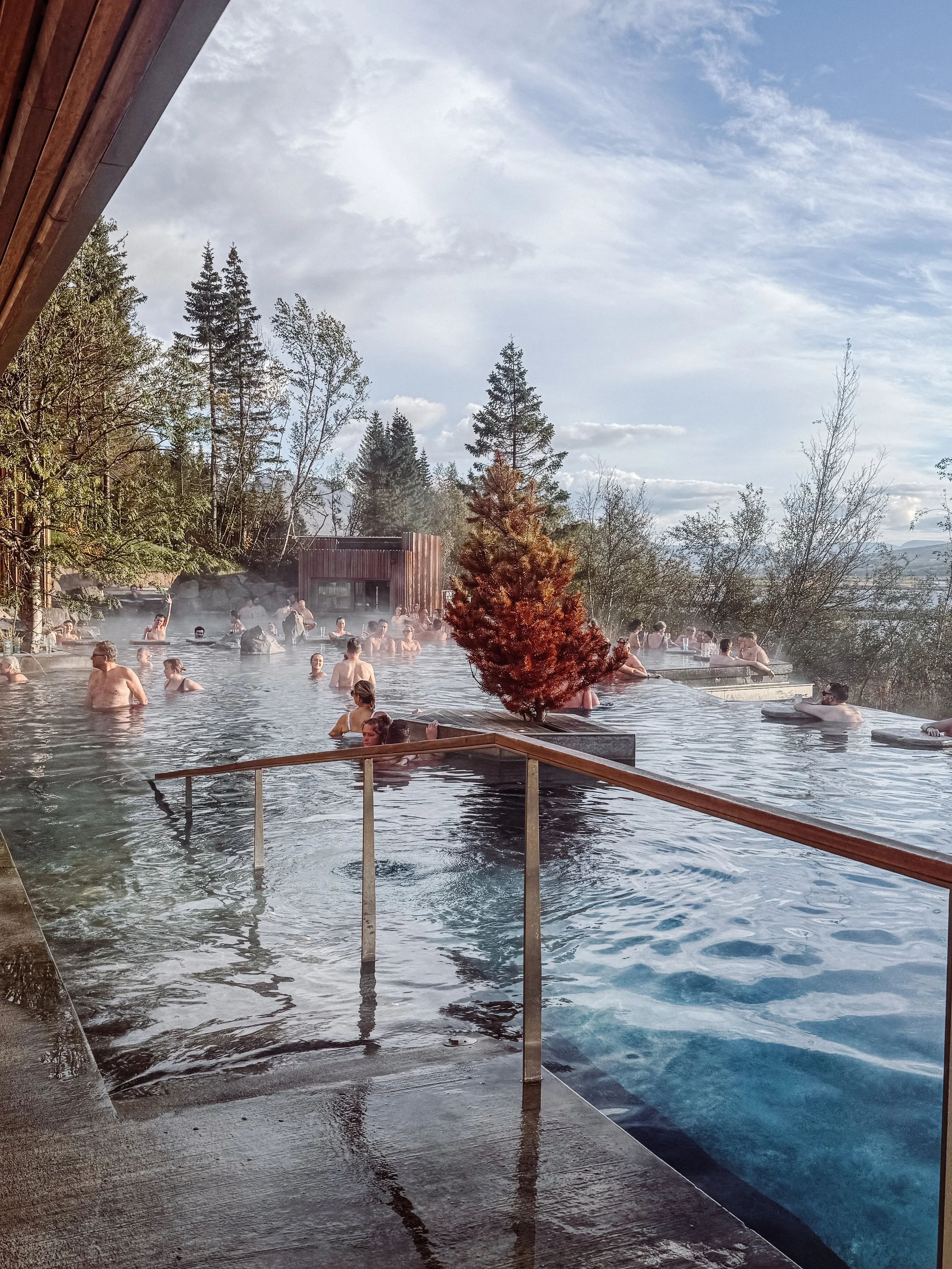 Zanim dotarliśmy na camping, pojechaliśmy jeszcze wygrzać się w pięknej Forest Lagoon. Mam słabość do odpoczywania w wodzie, szczególnie tej ciepłej, kiedy powietrze jest chłodne. Do tego można tam skorzystać z sauny i zimnego basenu, baru oraz bistro. Tego typu miejsca to świetna i bardzo lokalna forma wypoczynku. Szczególnie polecam jako odrobinę luksusu, jeśli śpicie w czasie wyjazdu na campingach.