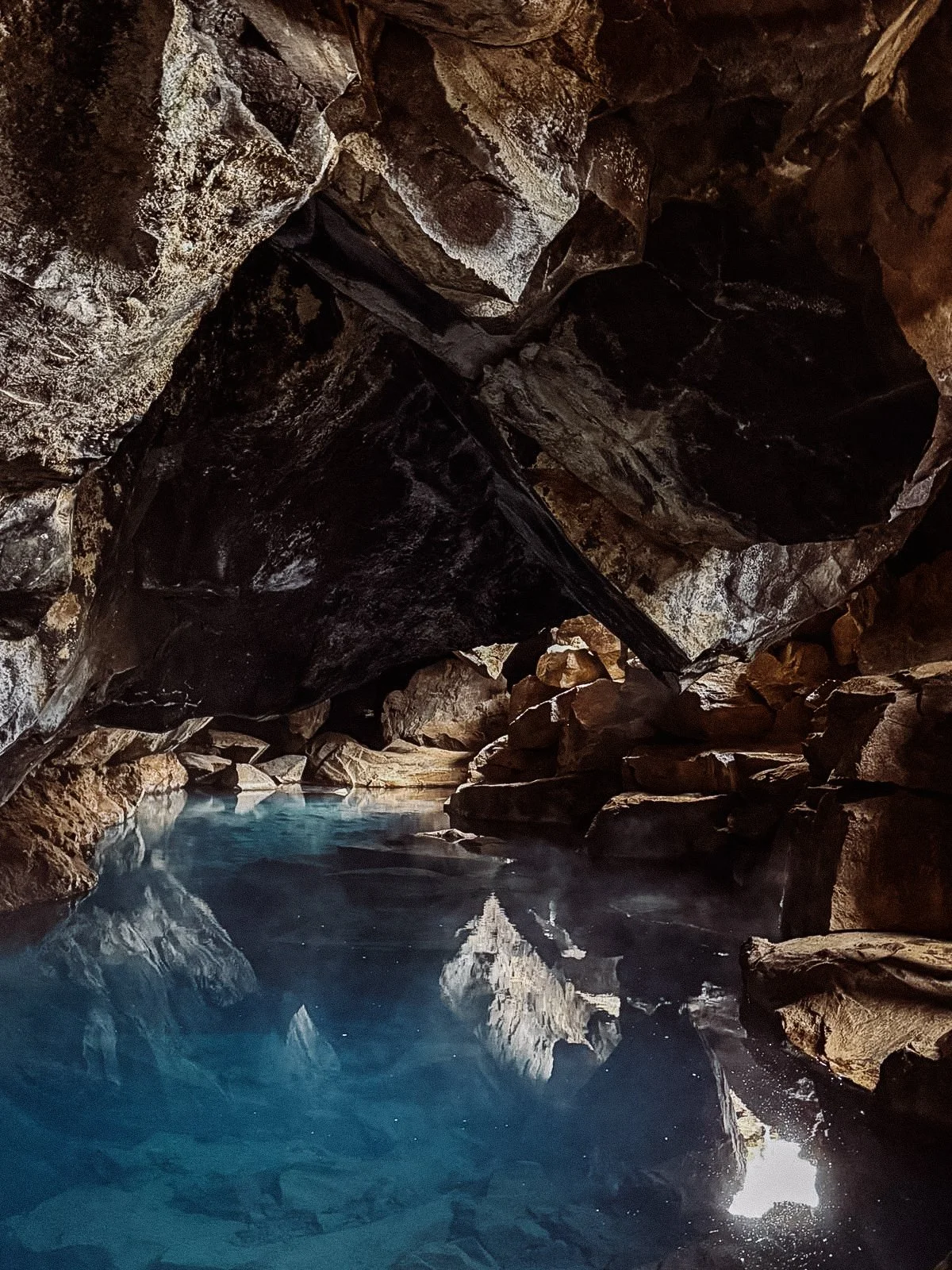 Z Hverir pojechaliśmy zobaczyć oddalone o zaledwie 10min jazdy i 6km maleńkie jezioro w jaskini Grjótagjá, w którym niestety dzisiaj nie można się już kąpać jak jeszcze robiono do lat osiemdziesiątych poprzedniego stulecia, kiedy erupcje wulkanu Krafla znacznie podniosły temperaturę tutejszej wody. Do samej jaskini można jednak wejść, żeby zrobić zdjęcie i zobaczyć to piękne miejsce, które możecie kojarzyć chociażby z Gry o tron.