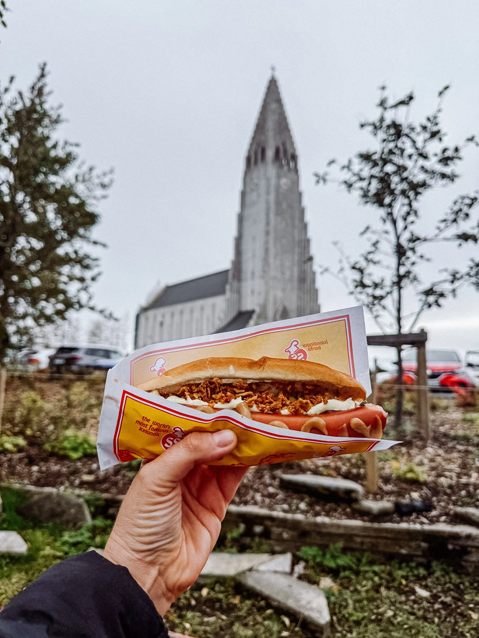 Jak powszechnie wiadomo, woda wyciąga 😉 Zakładam więc, że to czas na zjedzenie czegoś i mam dla Was dwie propozycje. Pierwsza z nich to (z nie do końca zrozumiałych przeze mnie powodów) islandzki klasyk - pylsa, czyli hot dog. Znajdziecie je wszędzie na Islandii, ale w Reykjaviku najbardziej znane są z dwóch miejsc: z budki blisko muzeum proponowanego przeze mnie na ten poranek, oraz obok kościoła - w Víkinga Pylsur. Mój hot dog ze zdjęcia jest z tego drugiego i to tak zwany klasyczny!
